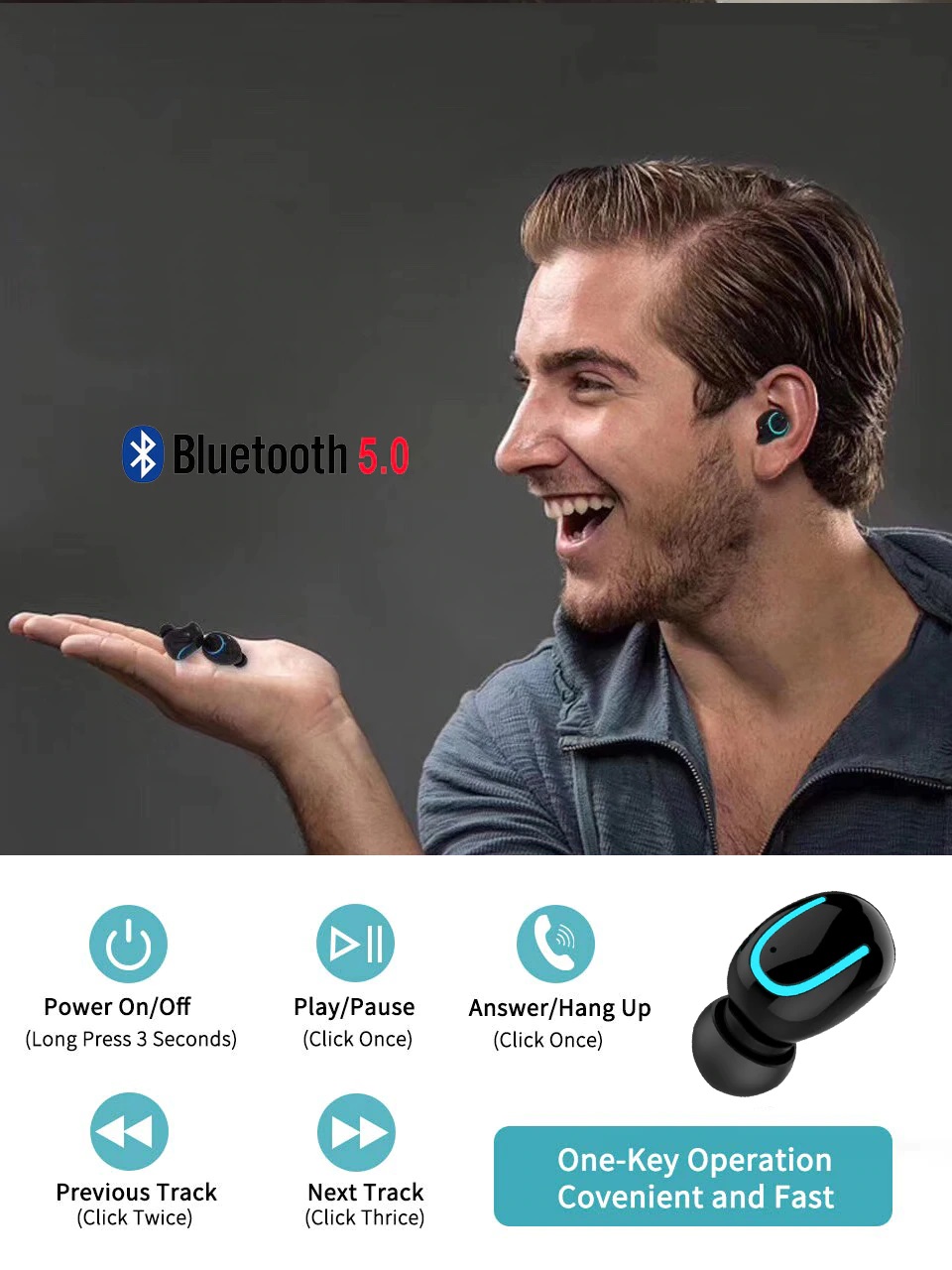 Versiunea Bluetooth 5.0 ofera o conexiune wireless extrem de eficienta, si o calitate imbunatatita a sunetului. Nu mai aveti probleme de conectare!